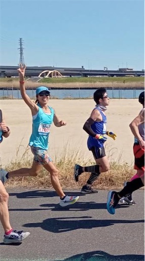「ハーフの通過〜分〜秒!」と伝えているのが聞こえます。
