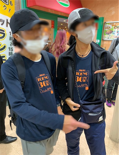 夫婦風な男女二人がお揃いの大会Tですれ違う時。